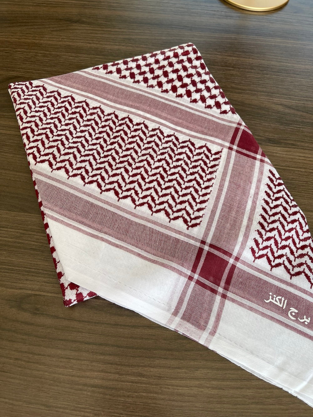 وشاح كوفية شماغ فاخر للجنسين باللونين الأحمر والأبيض