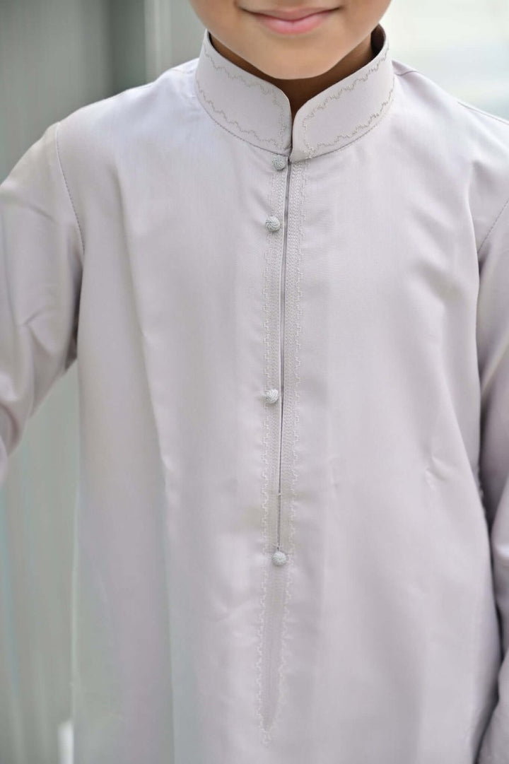 A cute everyday Light Grey Bahraini Thobe is made with quality material to give a soft and comfortable feel.