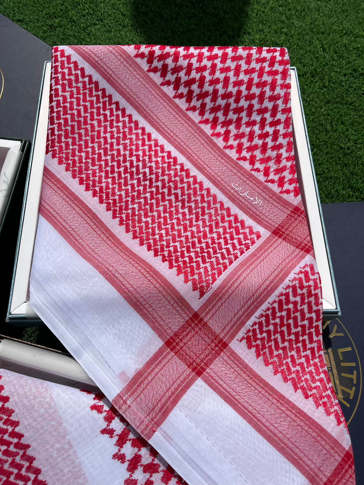 Unisex Red & White Luxury Shemagh Keffiyeh Scarf - Riyadh