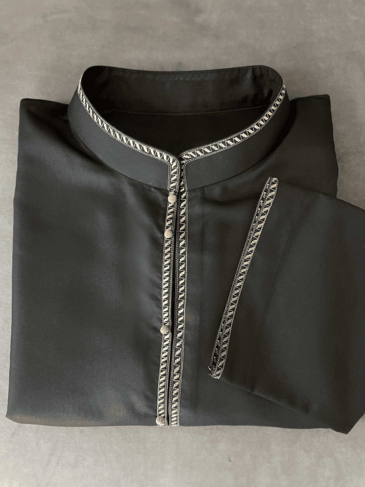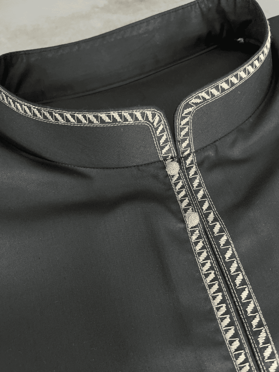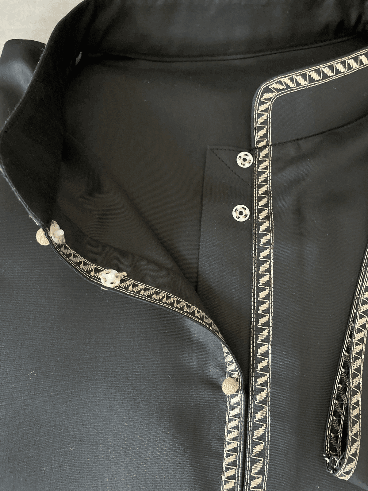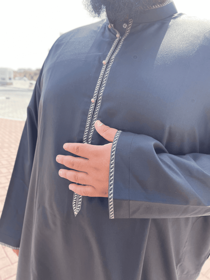 Mens Two Toned Black Bahraini Thobe with Cream Embroidery