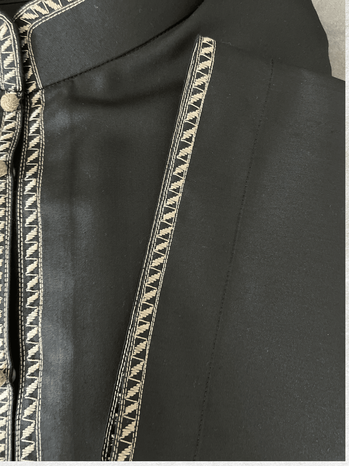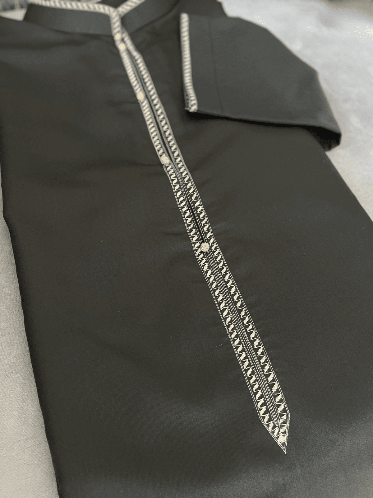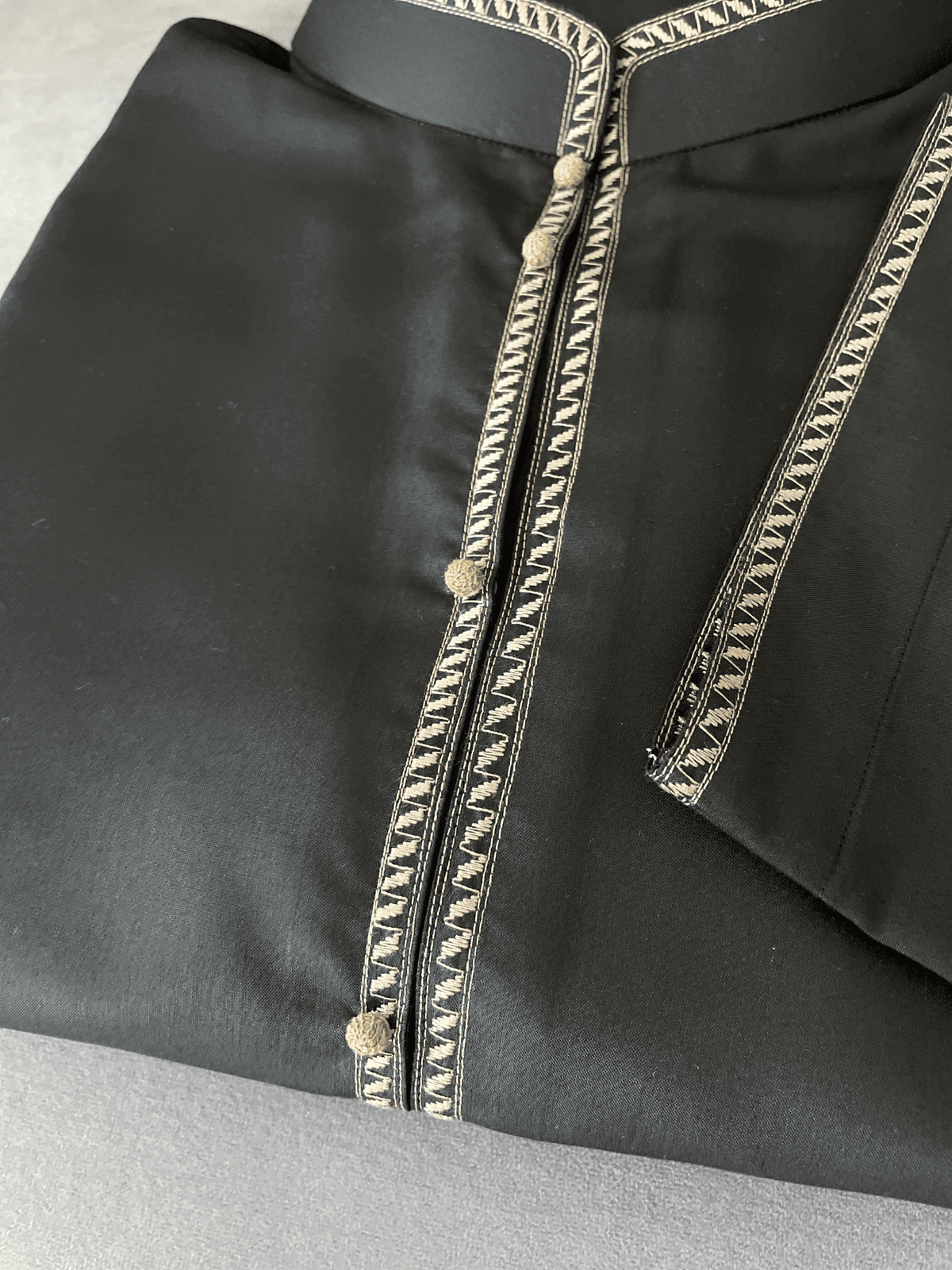 Mens Two Toned Black Bahraini Thobe with Cream Embroidery