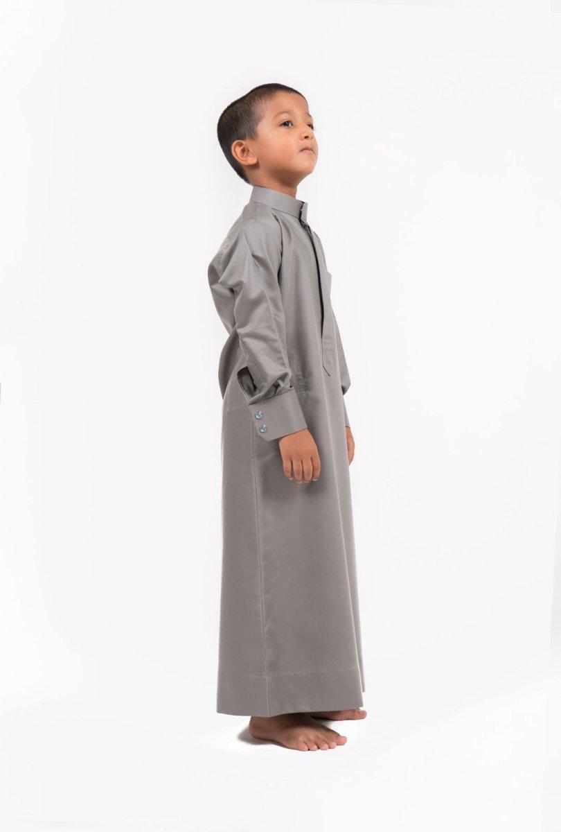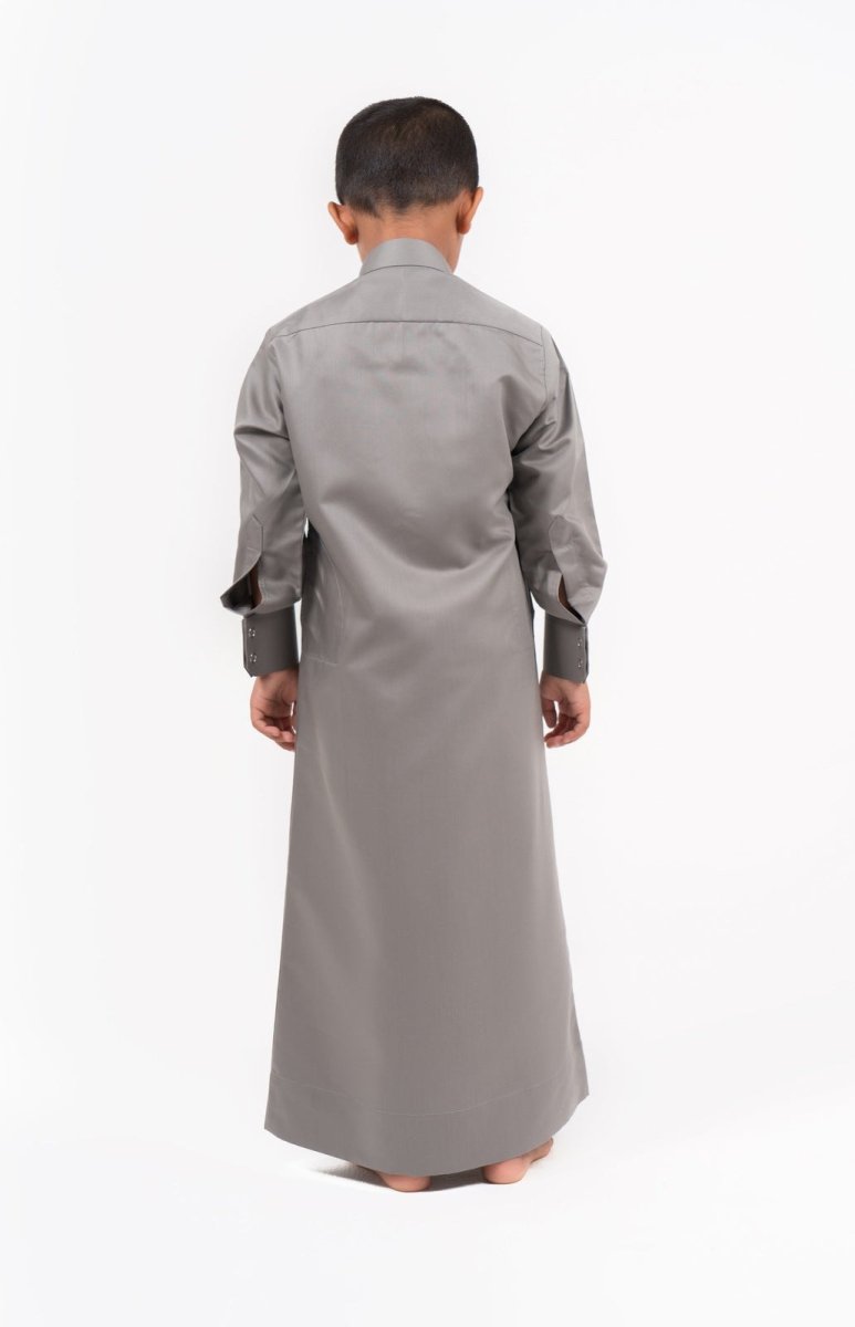 Indulge your child in the refined luxury of our bespoke kids' thobe, also known as dishdasha or thawb, meticulously crafted from anti-static Japanese luxury polyester. This exquisite piece features an Kuwaiti-style collar and a two-button barrel cuff, exuding sophistication in every stitch. Immerse your child in ultimate elegance with our meticulously tailored thobe (caftan), designed to perfection.