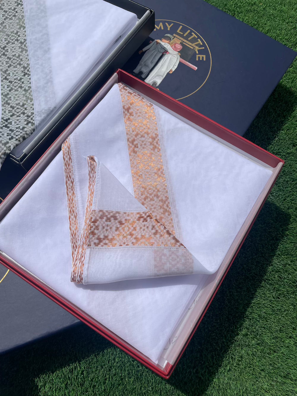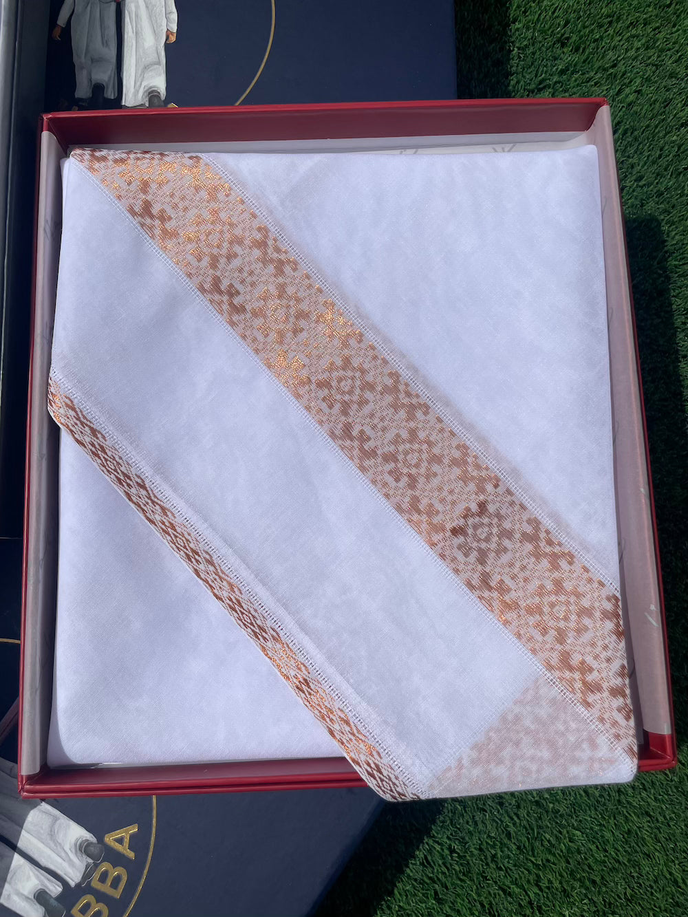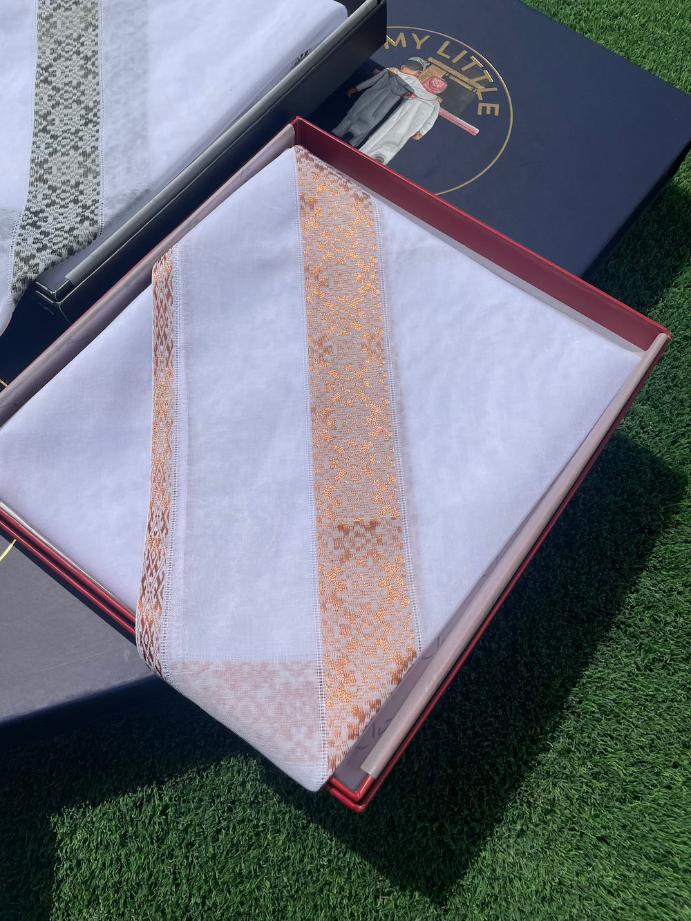 Its soft yet structured cotton makes it ideal for shaping as a ghutra or styling casually across the shoulders. Each fold reveals craftsmanship. Every glance captures pride.