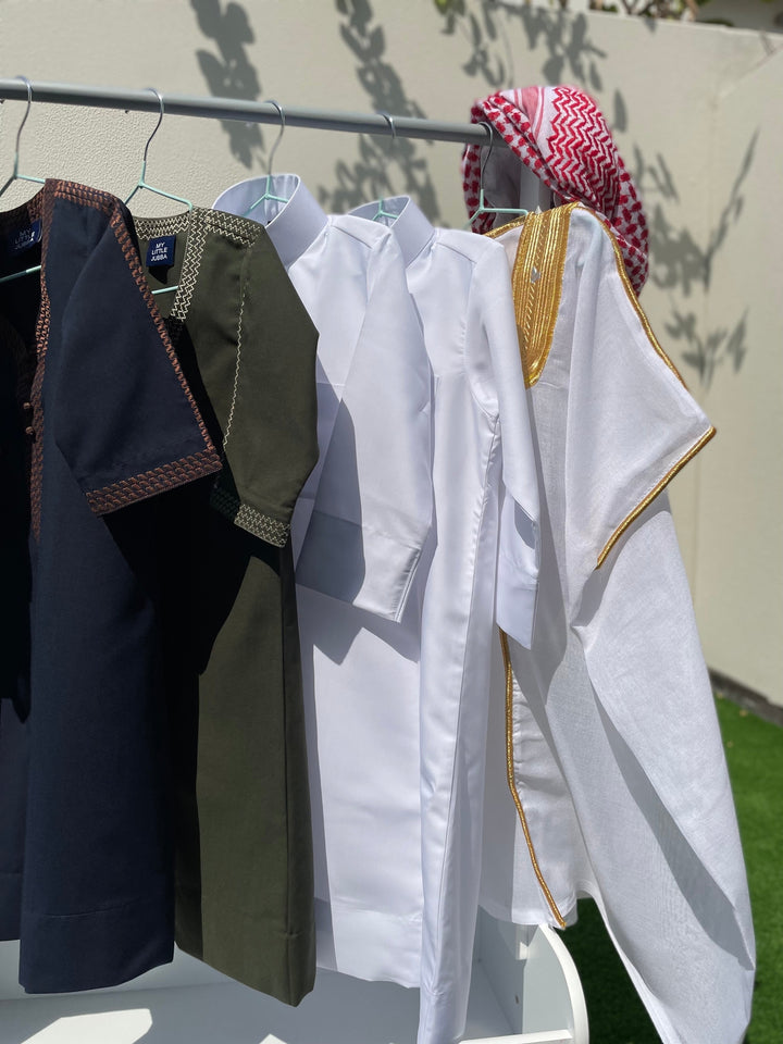Our thobes are expertly tailored in the United Arab Emirates, ensuring high quality and attention to detail.