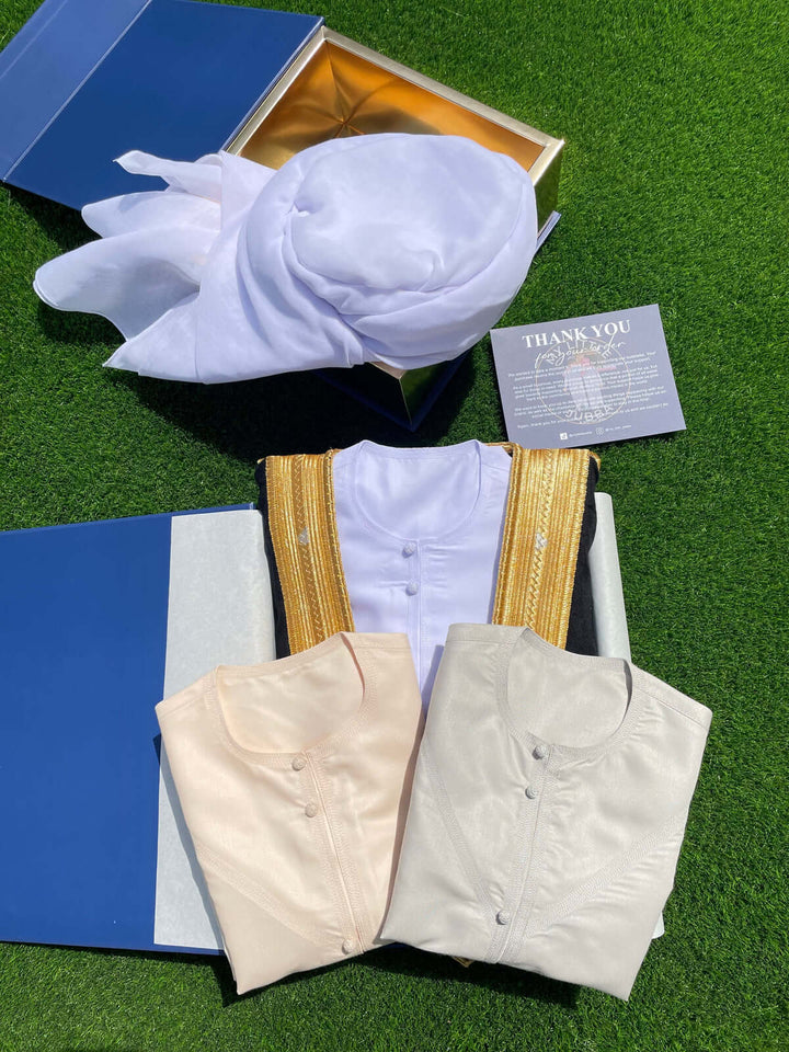 Our thobes are expertly tailored in the United Arab Emirates, ensuring high quality and attention to detail.