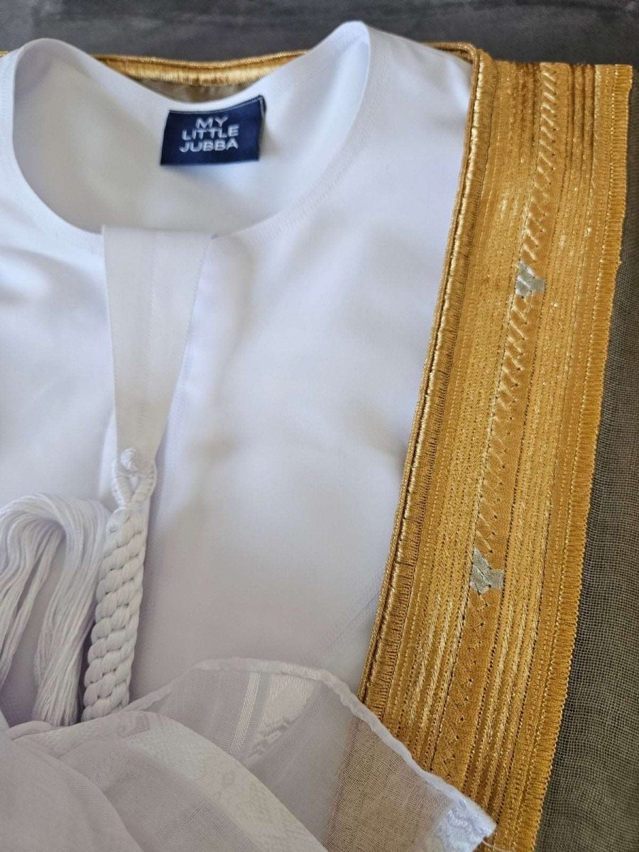 Handcrafted Elegance: Every element of the emirati full thobe set is handmade with precision. The dedication to craftsmanship is evident in every stitch, embodying both elegance and tradition in its design.